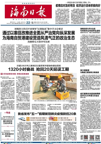 海南日报 头版 001 2020-04-221 2020年04月22日 星期三
