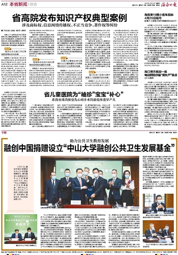 融创中国捐赠设立“中山大学融创公共卫生发展基金”