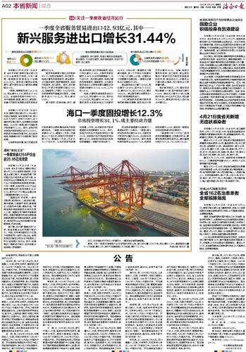 海南日报 本省新闻综合 002 2020-04-231 2020年04月23日 星期四
