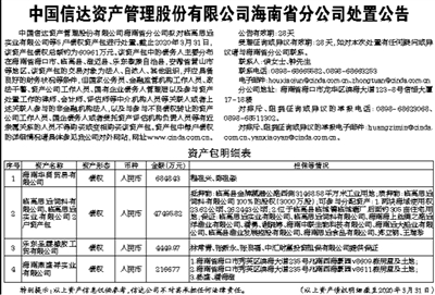 中国信达资产管理股份有限公司海南省分公司处置公告
