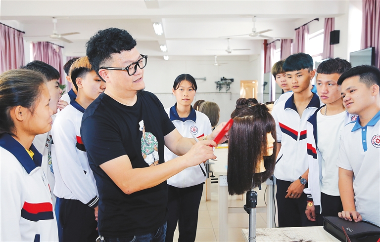 2012年,澄迈县中等职业技术学院向其抛出橄榄枝,邀请黄丽辉在学校任教。“想发展行业,还是得培养更多专业人才,而且许多家长对发廊存在误解,不让孩子入这行。”黄丽辉说,出于对本行业的热爱,以及想要改变本地人对美发行业落后与偏见的观念,他欣然答应学校要求,决心培养更多专业人才。