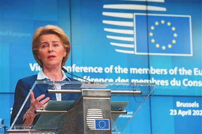 分析人士指出,“恢复基金”无疑是此次视频峰会中最引人注目的话题。虽然该基金的具体数目尚未确定,但欧盟委员会主席冯德莱恩表示,这笔基金规模将是“上万亿级”。为了筹集这些资金,欧盟委员会将创新融资方式,很有可能提议突破欧盟预算占国民生产总值比重的原有上限。