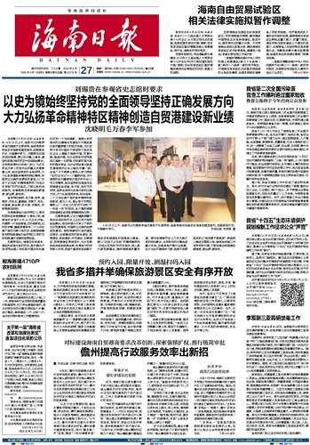 | 以史为镜始终坚持党的全面领导坚持正确发展方向 大力弘扬革命精神特区精神创造自贸港建设新业绩 | |