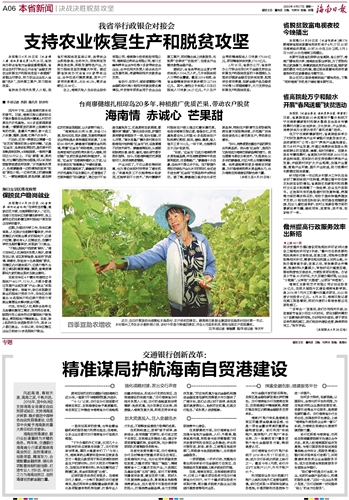 | 海南日报 本省新闻决战决胜脱贫攻坚 006 2020-04-271 2020年04月27日 星期一 |