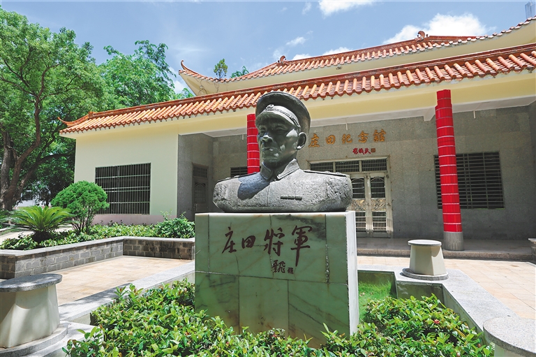 “这是庄田将军的塑像。将军的一生非常传奇,是万宁人民的骄傲。”万宁市委党史研究室主任陈星界对来访的海南日报记者说,庄田曾下南洋参与劳工斗争,去莫斯科进行军事学习,浴血长征、奋战琼崖、征战越南、荡敌粤桂滇黔,一生戎马转战半个中国。