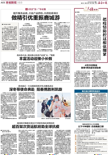 海南日报 本省新闻综合 003 2020-04-281 2020年04月28日 星期二