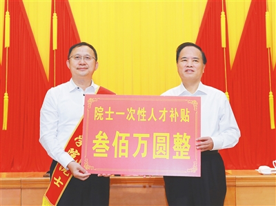 会上,刘赐贵向在神经光学成像和光学分子影像领域做出系统性创造性贡献而当选2019年中国科学院院士的海南大学校长骆清铭颁发了300万元奖金。大会向“南海系列”育才计划第二批人选以及获得2019年“海南省有突出贡献的优秀专家”、海南省“千人专项”人才代表颁发证书。骆清铭、史海涛、高德华、周皓、王小啟、陈涛等6位优秀人才代表在会上发言。