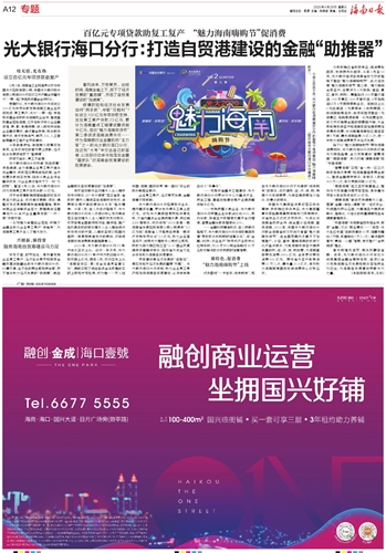 光大银行海口分行:打造自贸港建设的金融“助推器”
