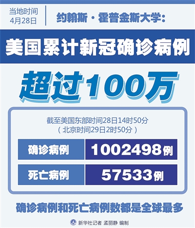 自1月20日确诊首例新冠病例至今的100天时间里,美国确诊病例数从1例增至100万例以上,成为全球新冠确诊和死亡病例最多的国家。一些专家的模型测算表明,真实的确诊病例、死亡病例数据可能更大。
