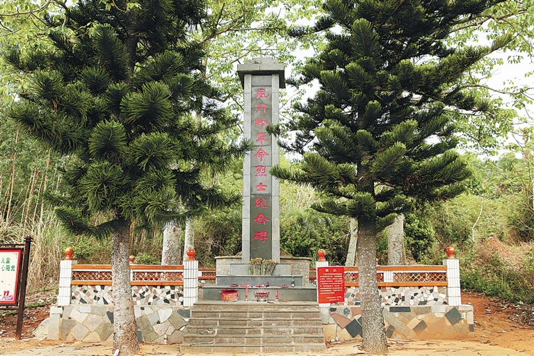 (风门岭革命烈士纪念碑 位于澄迈白莲镇潭城村北的风门岭东南坡)