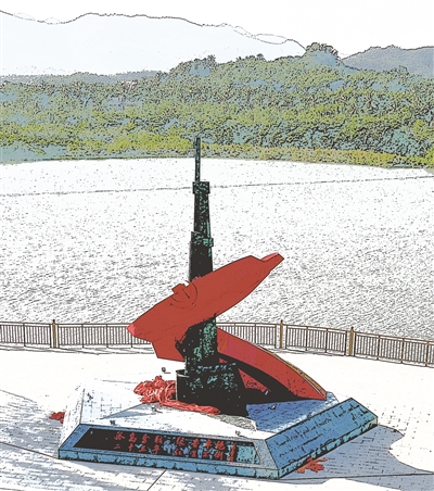 (纪念亭位于海口海榆东线二十一千米西侧的南渡江东岸旁)