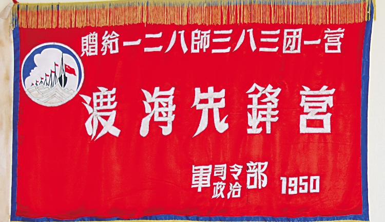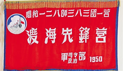 这面锦旗如今被收藏在中国人民革命军事博物馆内。“赠给一二八师三八三团一营渡海先锋营 军司令部、政治部 1950”,锦旗上的这些文字不禁让人想到当年渡海先锋营战士穿越炮火、跨越琼州海峡的必胜决心和不辱使命。