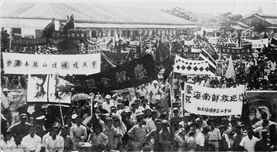根据《中国共产党海南历史(第二卷)》记录,1950年5月5日,新华社播发了中国人民革命军事委员会对海南岛解放的贺电,中南军政委员会也发出了祝贺胜利的命令。5月中旬,海南各地、各行业纷纷成立庆祝海南解放筹备会。6月5日,府海地区各界人民隆重举行庆祝海南解放大会,参加庆祝大会的有机关、团体及学校83个单位共3万多人。