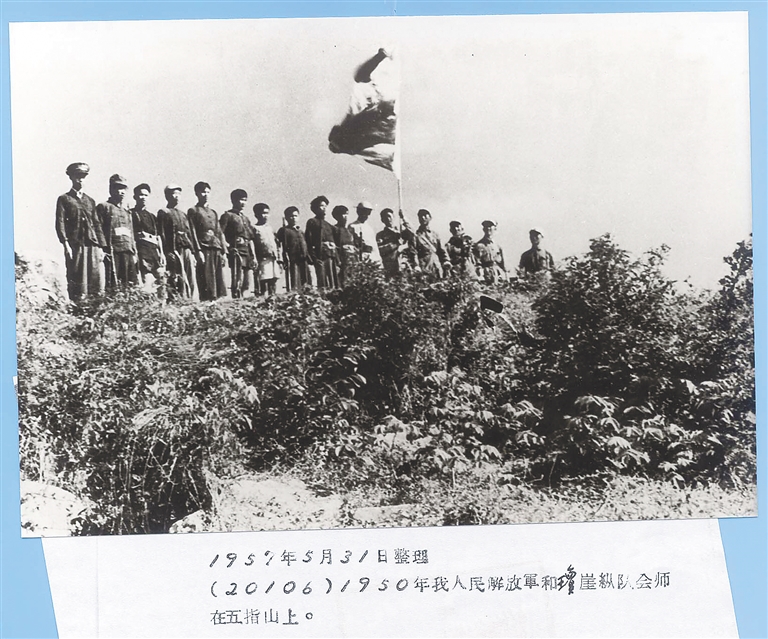 渡海大军与琼纵接应大军胜利会师的历史画面。
