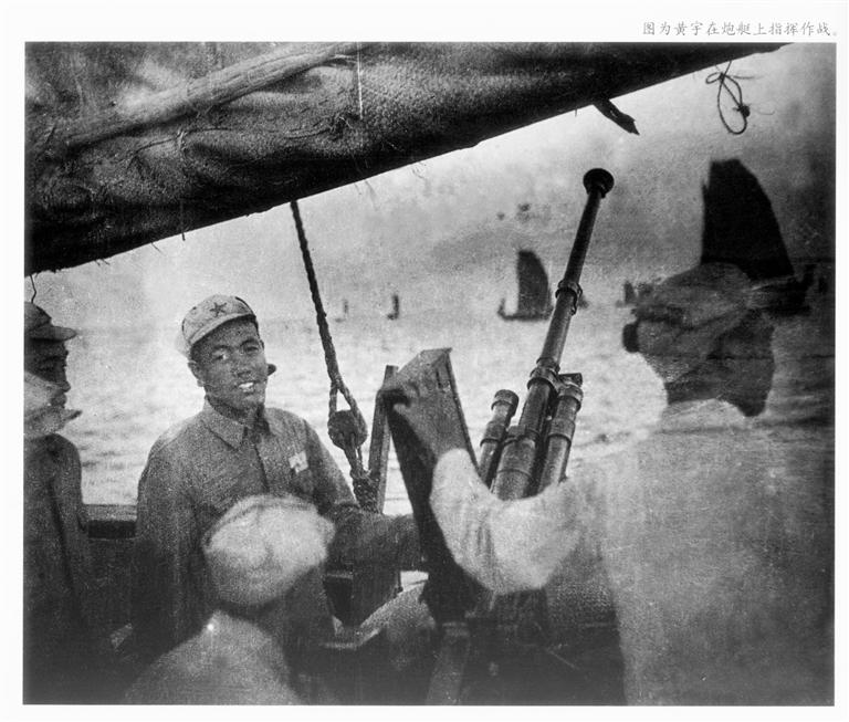 “原来是一艘运输船!”敌军放松了警惕。而当指挥船抵近军舰右侧,进入它的主炮射击死角时,黄宇果断下达攻击命令,炮手们掀开篷布开炮射击,数十发炮弹接连落在敌军军舰上,直打得国民党军措手不及、无力还击,只好驾驶这艘庞然大物拖着浓烟落荒南逃。