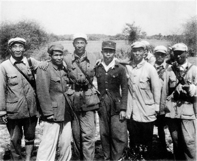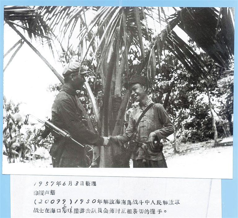 哥哥揽着弟弟的肩,弟弟搂着哥哥的腰,个个脸上露出喜悦和兴奋之情,一张泛黄的老照片记录了1950年3月第40军118师352团一个加强营,在师参谋长苟在松的率领下,在儋州白马井首次潜渡登陆,并与琼纵部队胜利会师的场景。