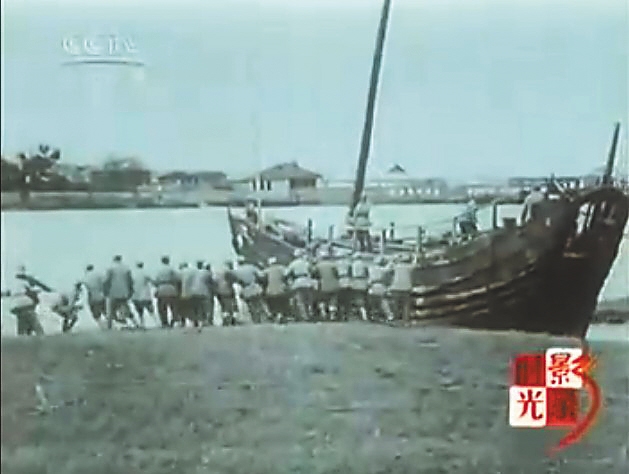1950年4月16日下午摄影师刘德源、王永振、石益民等同志,随军分别登上机帆船。夕阳西下,海面一片平静。夜幕降临时,我军主力部队强渡琼州海峡,解放海南岛的战役开始了。经过几个小时夜航,天将拂晓的时候,在我军猛烈的炮火下,迅速突破国民党薛岳部海陆空军对海峡的封锁。在琼崖纵队和先遣部队的接应下,17日凌晨我们在海滩上将渡海作战部队和迎接部队会师的生动场面抢拍入我们的镜头。