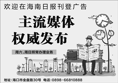海南日报报业集团旗下媒体: 海南日报 |南国都市报 |南海网 |南岛晚报 |证券导报 |法制时报 |海南农垦报 返回首页