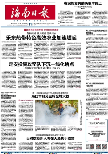 海南日报 头版 001 2020-05-111 2020年05月11日 星期一