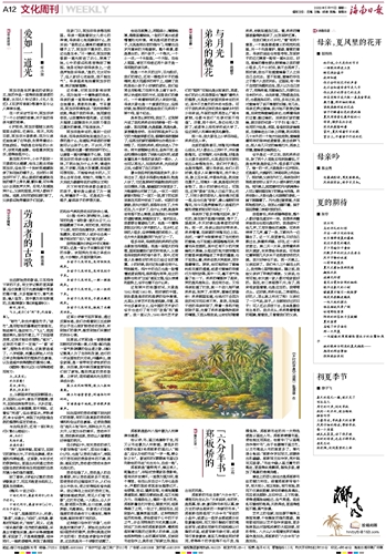 | 海南日报 文化周刊 012 2020-05-111 2020年05月11日 星期一 |