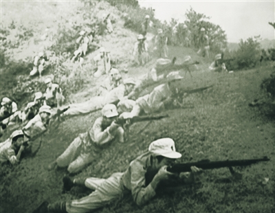 红军操场司令台遗址,隐藏在一片密林中。可以想象,红军曾在此秘密动员誓师、兴兵操练的场景。曾经的母瑞山上战火纷飞,在老照片中,人们得以窥见琼崖红军在艰苦困顿的条件下顽强抵抗,和敌人殊死战斗,反“围剿”、反清洗。母瑞山革命根据地纪念园园长王学广说,在密林里搞革命的红军,和当地村民鱼水情深,因此也谱写了一曲“山不藏人人藏人”的革命赞歌。