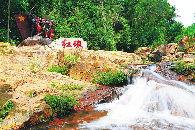 这座以红色为底色的巍巍青山,是土地革命时期琼崖特委、琼崖苏维埃政府和红军独立师三大领导机关的驻地。1928年3月,国民党蔡廷锴师抵琼“围剿”琼崖革命,琼崖军民反“围剿”受挫。同年年底,琼崖苏维埃政府主席王文明率部转移到母瑞山,开辟革命根据地,第一次保存了革命火种。