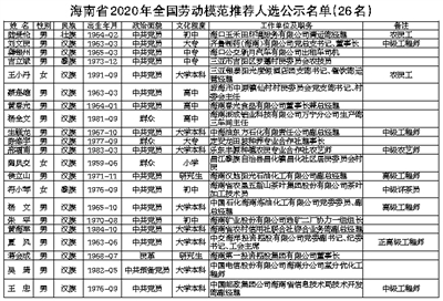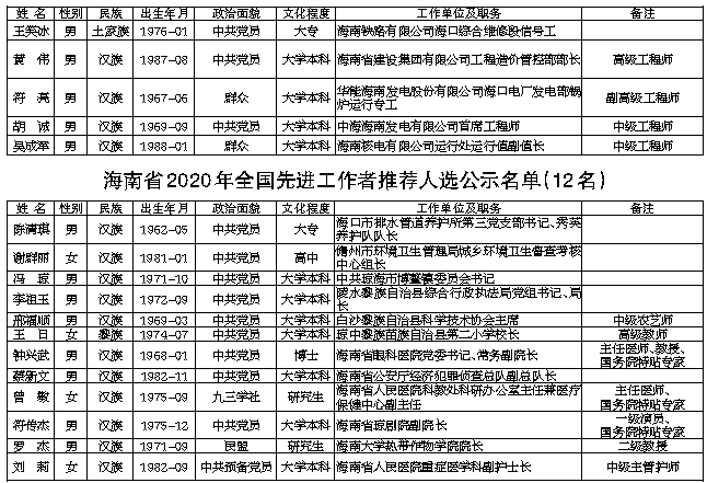 受理单位:海南省2020年全国劳动模范和先进工作者推荐评选委员会办公室。