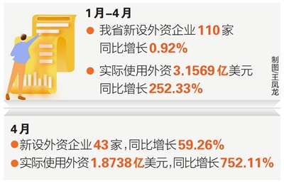 在新设外资企业方面,今年以来,我省新设立的外资企业涉及贸易、投资、医药、康养、旅游、农业、物流等领域,来自美国、俄罗斯等国家的投资者不少。其中4月,海南复星旅游文化投资有限公司等企业注册成立。