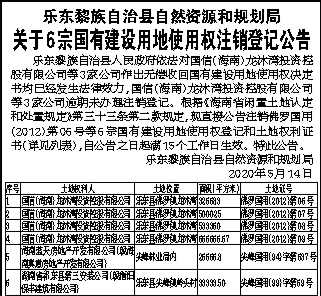 关于6宗国有建设用地使用权注销登记公告
