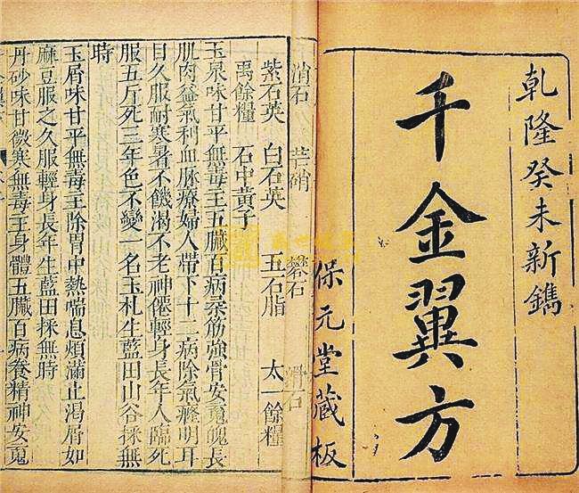 孙思邈认为“人命至重,有贵千金,一方济之,德逾于此”,故将自己著作冠以“千金”二字。《千金要方》三十卷,全书合方、论五千三百首,内容丰富,书中既有诊法、证候等医学理论,又有内、外、妇、儿等临床各科,已接近现代临床医学的分类方法。