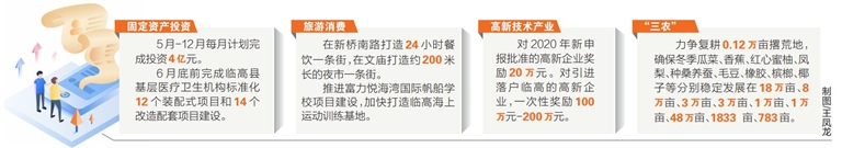 在超常规推动投资方面,临高全面分解压实投资任务。按月度分解固定资产投资计划,5月-12月每月计划完成投资4亿元,推动项目满负荷施工及抢抓施工进度,争取超计划投资和提前完工。