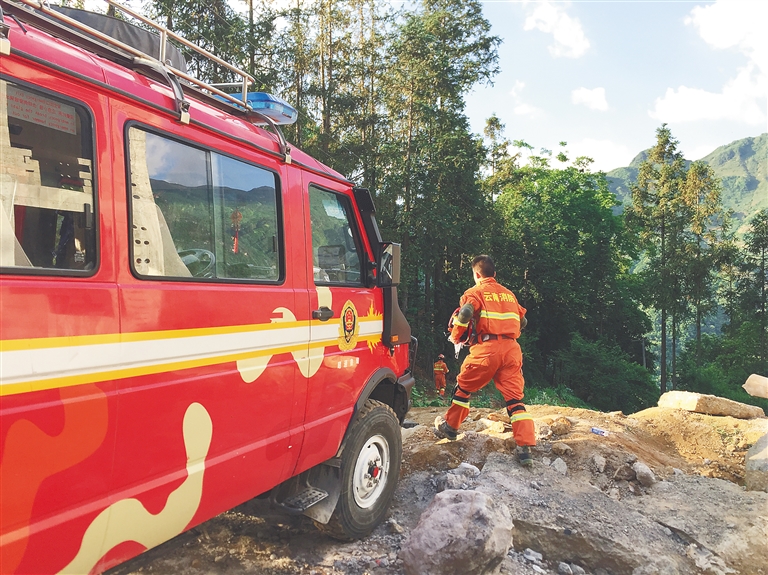 5月19日,救援队员赶往云南省昭通市巧家县小河镇垭口村开展抗震救灾工作。