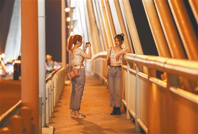 在路灯照耀下,开车兜风固然神清气爽,而走上这座大桥,更能感受凭栏远眺的潇洒。夏夜里,漫步桥上,海风吹拂,纾解了白天的暑热,心情随风飞扬。而视野里,一眼望不到尽头的海湾颜色深邃,仿佛变得温柔起来,大桥两岸是万家灯火,不知又有多少故事发生……而这时,你只需凭栏远眺,静静感受椰城不夜天。