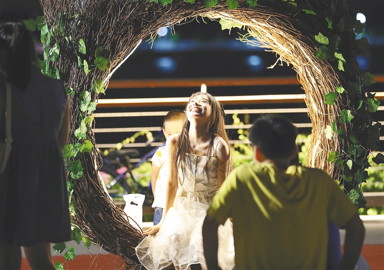 广场上,海堤边,街头歌手在此吟唱,自由舞者以舞相会,形成新潮的街头文化,凸显出年轻人的生活激情。“他们在保持了自己爱好的同时,也让我们享受到了这样自在的街头音乐会。这样的灯光、这样的大海、这样的音乐,让人十分享受。”海口市民李桢说,只要一有空,自己就会约朋友在海口湾度过属于夜晚的慢时光。