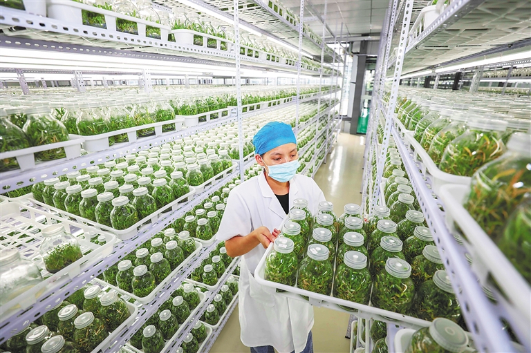 除了扩大面积、提升品质,石斛深加工产品也在不断丰富。从最初的石斛鲜条,到现在的石斛盆景、石斛饮片、石斛酒、石斛化妆品等,一条涵盖组培、育苗、种植、深加工、科研的石斛全产业链已初具雏形。