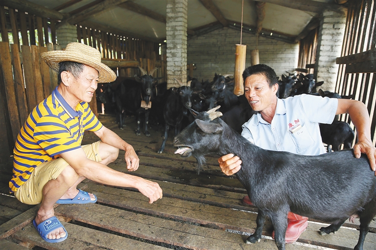 看到陈文连养羊脱贫,村里其他农户开始向他“取经”。同是贫困户的陈焕甫就是其中一位。“他养羊有很多小窍门,没事我就去看看他是怎么喂羊的。”陈焕甫说,在2018年,他尝试养羊也脱了贫,现今还存栏60余头大小山羊。在陈文连的带动下,如今坡尾村有8户农户养起了黑山羊。