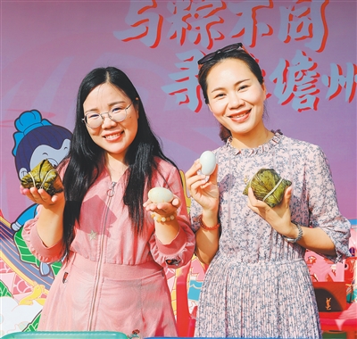 商家在活动启动仪式上推介儋州粽子和海鸭蛋。