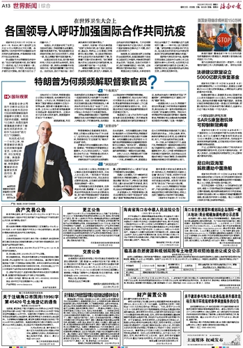 海南日报 世界新闻综合 013 2020-05-201 2020年05月20日 星期三