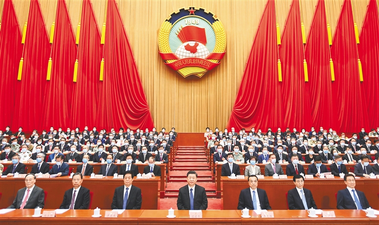 习近平、李克强、栗战书、王沪宁、赵乐际、韩正、王岐山等在主席台就座。