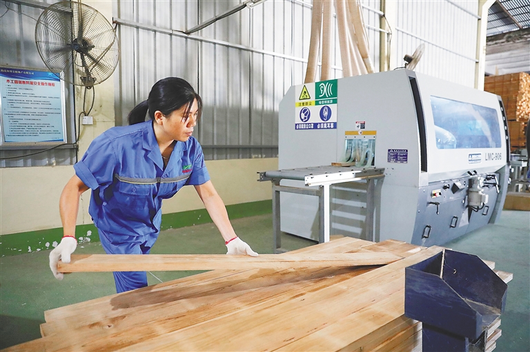 橡胶木华丽变身的背后,是企业以科技创新驱动产业转型升级的生动实践。近年来,宝橡林产集团加强科技创新和产品研发力度,不断延伸深加工产业链条,让橡胶木变出浓浓“科技味”,助力我省“三棵树”产业发展。