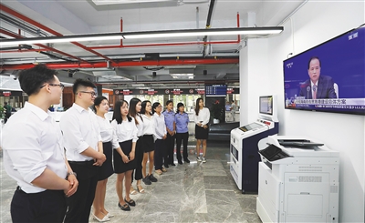 6月8日上午,来自近60家中央驻琼媒体及省内媒体的80余名记者在海南省新闻发布厅观看了这场新闻发布会。记者们认真记录,从北京发布会现场的问答中寻找新闻报道的关注点。