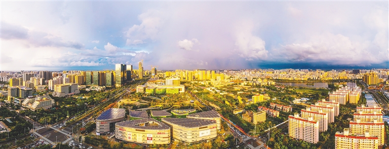 6月7日,航拍海口国兴大道及周边城市景观。 本报记者 张茂 摄