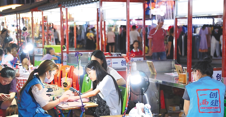 ①那大镇那恁路夜市深受年轻市民喜爱。通讯员 黎有科 摄