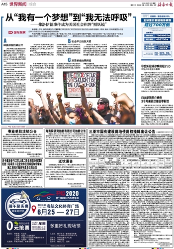海南日报 世界新闻综合 015 2020-06-091 2020年06月09日 星期二
