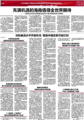 第003版:关注国新办《海南自由贸易港建设总体方案》新闻发布会