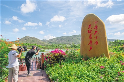 6月11日,海南线路采访团先后参观了三亚博后村和金鸡岭路社区,实地采访乡村民宿产业发展、社区网格化管理等内容。在了解到小小的博后村“孵化”出几十家特色民宿后,《光明日报》记者朱蒂尼感慨:“发展特色产业,对助力精准脱贫,实现全面小康至关重要。博后村村民因地制宜,发挥优越的地理优势,打造独具特色的民宿,并形成规模化,他们用汗水将家乡的绿水青山灌溉成金山银山。”