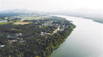 前有生机盎然的沃野平畴,后为舒缓流淌的万泉河水,远处是蜿蜒起伏的翠绿青山。移步村道,曲径交错,门户相连;凝视村舍,土洋交汇,错落有致;置身村中,绿林掩映,花草芬芳。椰林掩映下的村庄有一种特有的宁静、祥和。