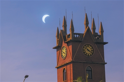 6月21日,夏至,海南日报记者在海口拍摄的“日环食”天文景观(二次曝光拍摄)。据了解,16时04分,海口上空开始出现最精彩的食甚(食甚是太阳被月亮遮去最多的时刻)景观。