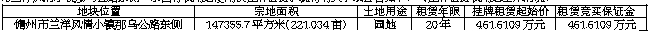 二、竞买事项:(一)竞买人资格:中华人民共和国境内外的法人、自然人和其他组织(除法律、法规另有规定者除外)均可申请参加租赁竞买,申请参加租赁竞买者须提出书面竞买申请,并提供《竞买须知》中要求提供的相关文件。申请人应具备的其他条件:1.只可单独租赁竞买,不得联合租赁竞买;2.同一租赁竞买人只能提交一次租赁竞买报名(同一法定代表人视为同一名租赁竞买人);具有下列行为的法人、自然人和其他组织不得参加本次土地挂牌租赁活动:1.在儋州市范围有拖欠土地租赁金行为,并未及时改正的;2.在儋州市有闲置土地、违法利用农村集体土地建设商品住房、擅自改变土地用途等违法行为,并未及时纠正的;3.失信被执行人。(二)本次国有农用地使用权挂牌租赁设有底价,按照价高且不低于底价者得的原则确定竞得人。(三)申请人可于2020年6月22日8:30至2020年7月20日16:00到海口市美兰区新埠岛西苑路横沟二街D19栋3楼咨询和购取挂牌租赁手册,并按挂牌租赁手册的具体要求报名参加租赁竞买。(四)交纳租赁竞买保证金的截止时间为2020年7月20日16:00(北京时间)。经审核,申请人按规定交纳租赁竞买保证金,具备申请条件的,我局将在2020年7月20日17:00(北京时间)前确认其租赁竞买资格(保证金以款到账为准)。(五)挂牌地点:儋州市自然资源和规划局五楼大会议室。挂牌时间:2020年7月12日9:00至2020年7月22日10:00(北京时间)。挂牌时间截止时,有租赁竞买人表示愿意继续竞价的,转入现场竞价,通过现场竞价确定租赁竞得人。(六)本次挂牌租赁活动挂牌报价阶段只接受书面报价,不接受电话、邮寄、电子、口头等其他方式报价。(七)该宗地块四至界线清楚、面积准确、土地权利清晰、无法律经济纠纷。(八)租赁竞得人自《国有农用地使用权租赁合同》生效之日起15日内付清土地租赁金。(九)挂牌租赁的地块以现状条件租赁。本次挂牌租赁事项如有变更,以届时变更公告为准。(十)本公告未尽事宜详见《儋州市国有农用地使用权挂牌租赁手册》,该手册所载内容为本公告的组成部分。联系人:陈先生、张女士。联系电话:23883393、32855875。地址:儋州市自然资源和规划局五楼大会议室。查询网址:http://www.landchina.com。