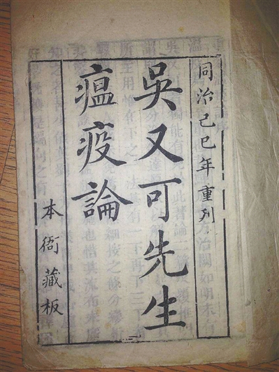 明崇祯十五年(1642年),瘟疫横行,十户九死。山东、南北直隶、浙江等地大疫,五六月间益盛,“一巷百余家,无一家仅免,一门数十口,无一仅存者。”医生们都运用伤寒法治疗,毫无效果。彼时,名医吴又可亲历每次疫情,积累了丰富资料,推究病源,潜心研究,依据治验所得,撰写成全新的《瘟疫论》一书,开创了我国传染病学研究之先河。